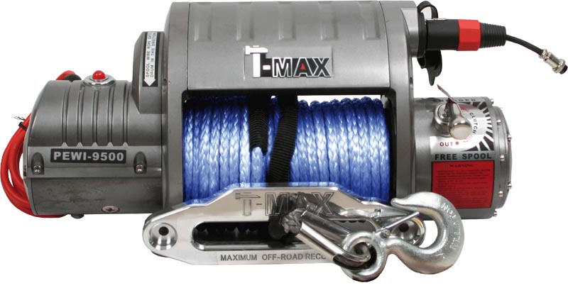 Treuil TMAX PERFORMANCE PEWI9500 : Il est équipé, d'un moteur électrique 12 volts, d'un réducteur planétaire 3 étages, d'un frein de retenue de charge automatique, d'un écubier alu et d'une commande à distance et filaire.